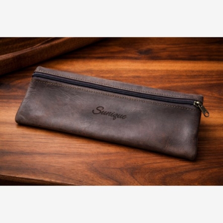 Genuine Leather Pencil Case – Personalised (Brown & Tan)